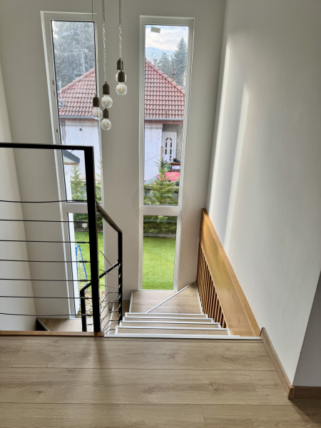 Minden nyílászáró sávrolóval felszerelt, az otthon biztonságáról pedig riasztórendszer, illetve kamerarendszer gondoskodik.