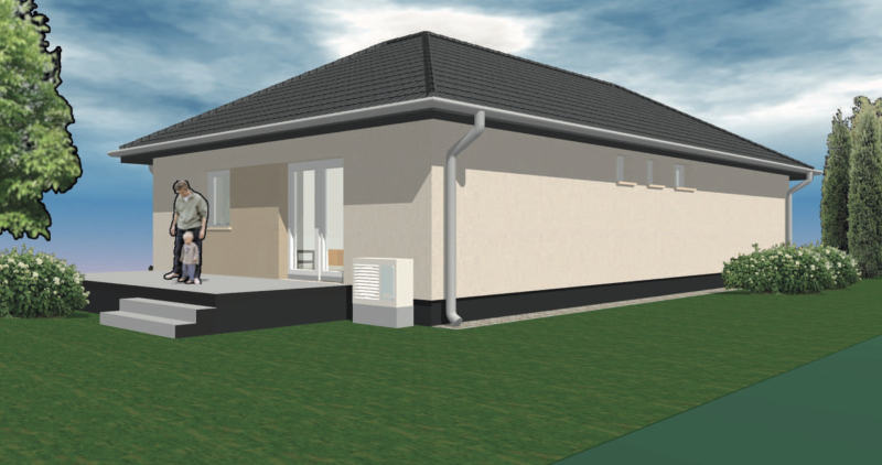 A fűtésről monoblokkos hőszivattyús rendszer gondoskodik, padlófűtéssel.