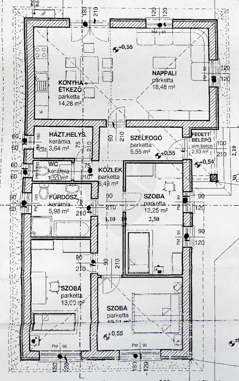 Nappali: 4 konnektor + internet- és kábeltévé előkészítés