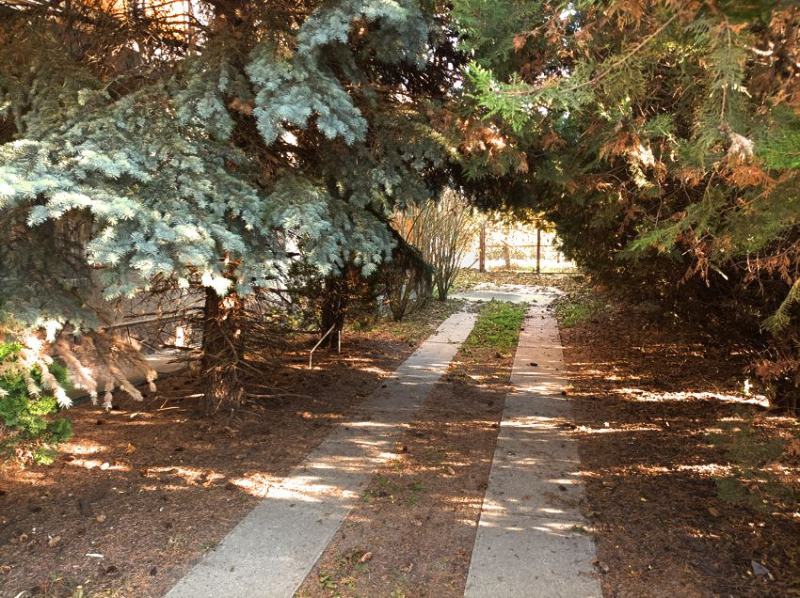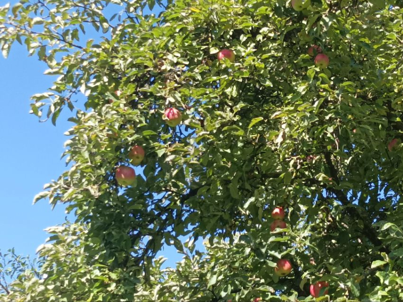 Rendezett kert gyümölcsfákkal, dísznövényekkel