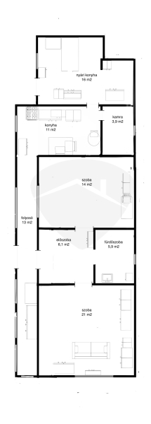 A ház vegyes falazatú (vályog és tégla), jó elrendezésű, praktikus helyiségekkel. A lakótérben 2 szalagparkettás szoba, konyha, kamra, fürdőszoba és előtér található. Az udvar felől nyári konyha is tartozik az épülethez, amely sokoldalúan hasznosítható.