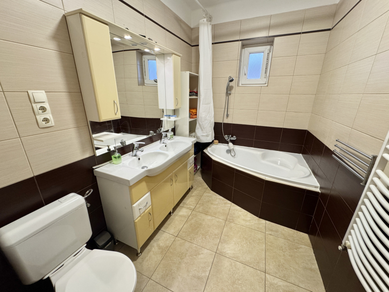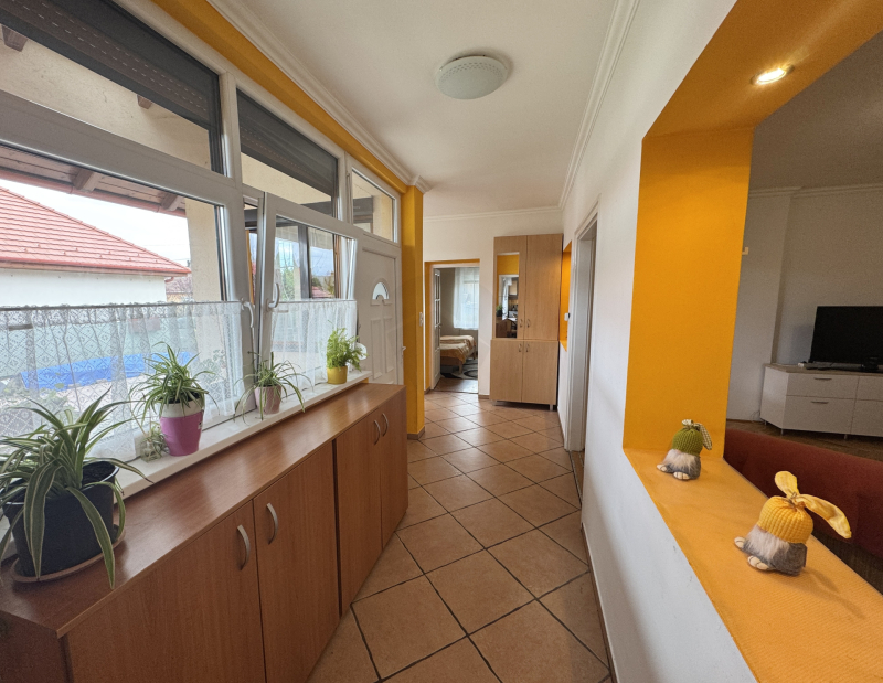 A szobák burkolata igényes szalagparketta, amely tovább fokozza az otthon meleg hangulatát.