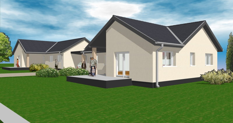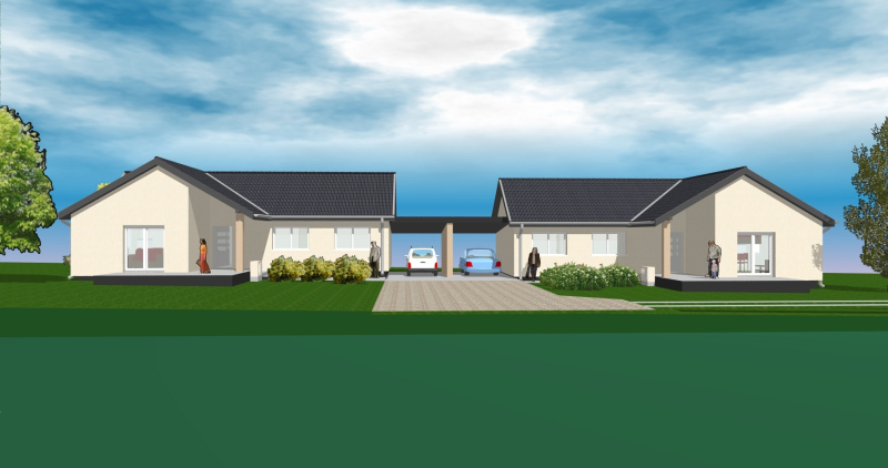 Ikerházak fedett gépkocsi beállókon keresztül csatlakoznak egymáshoz!