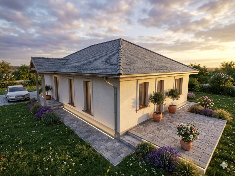 A korszerű anyaghasználatnak köszönhetően a ház energiatakarékos és alacsony fenntartású lesz.