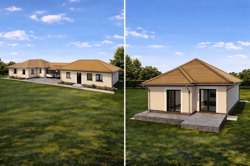 -Elektromos hálózat: Szobánként 3, a nappaliban 4, a konyhában pedig 6 aljzat kerül kialakításra. A TV-, internet- és riasztórendszer, valamint az elektromos kapu előkészítése szintén a műszaki tartalom részét képezi.