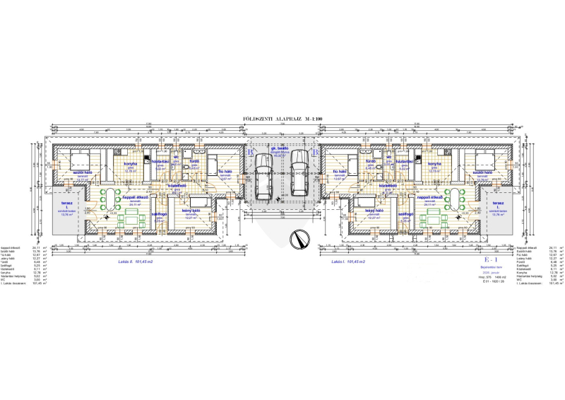 -Hátsó lakás: 101,45 m2 nettó alapterület + 934 m2 saját telekrész.