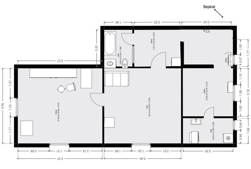 Fűtését jelenleg gáz konvektor biztosítja, a melegvízről villanybojler gondoskodik.